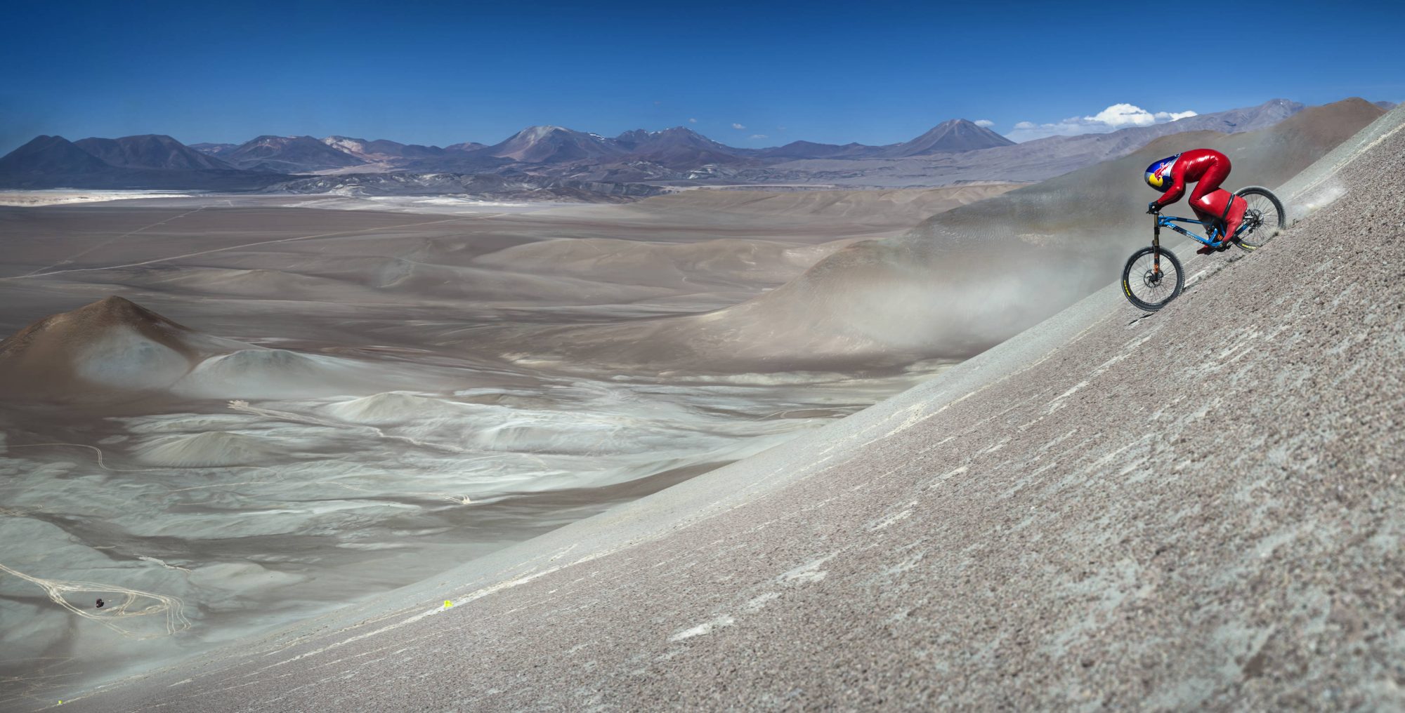 And in just 11 seconds and at a speed of 167.6 km/h with a standard mountain bike, whose components you could buy yourself in the high street, he reached that speed hurtling down a mountain with no name in Chile’s Atacama desert.
